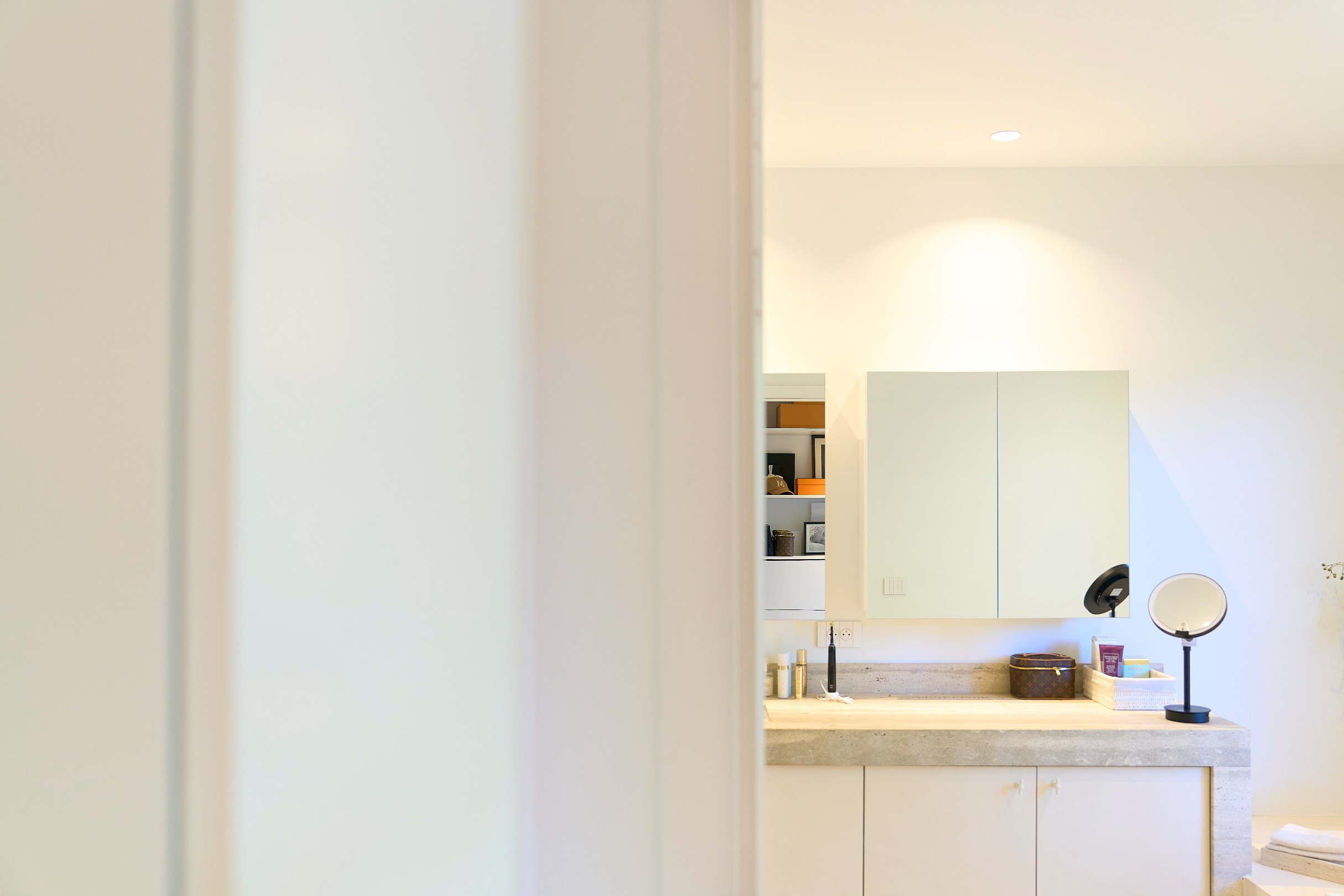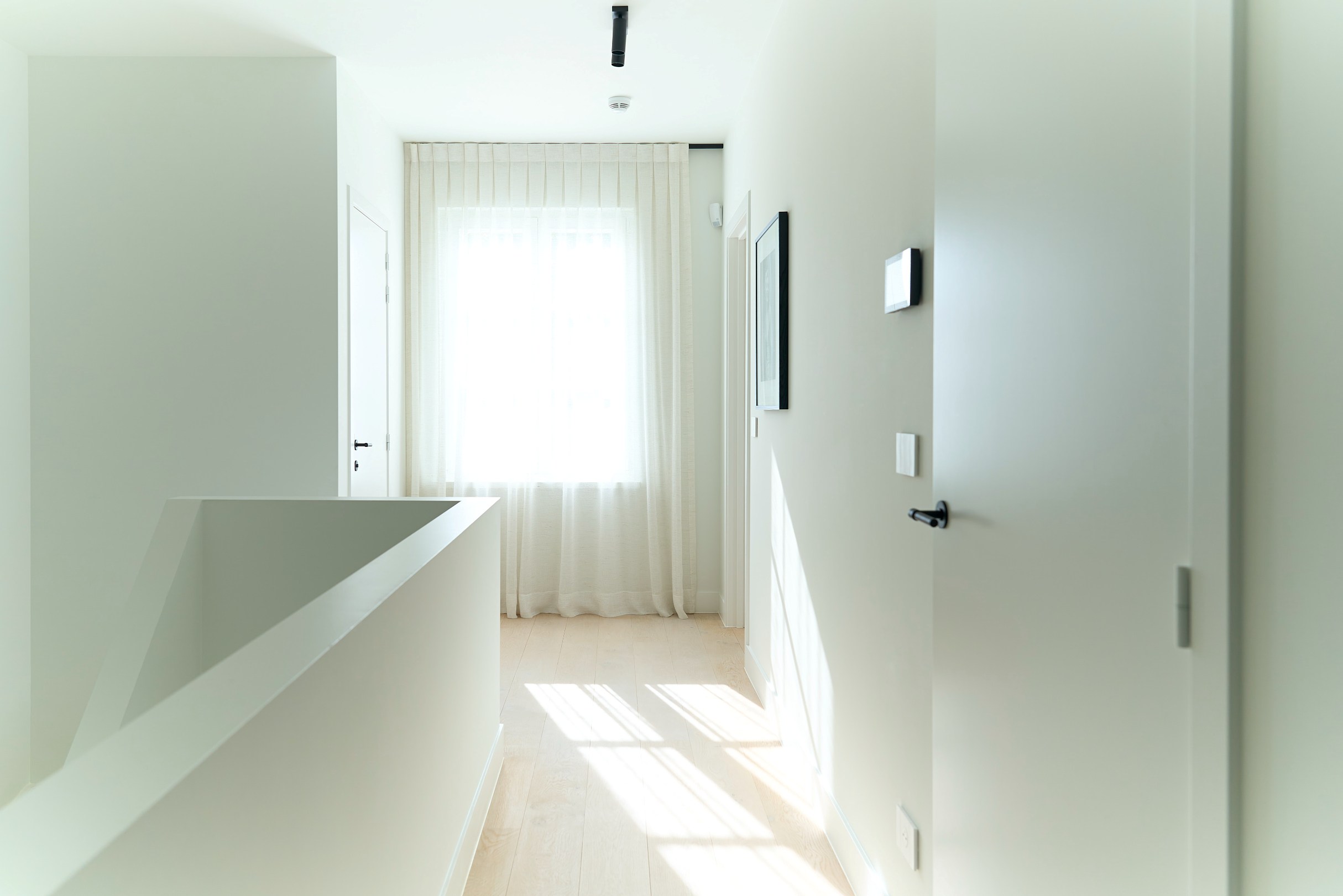 Indeling verdieping: overloop met ouderslaapkamer met eigen dressing en luxe badkamer, ruime tweede en derde slaapkamer, tweede badkamer, nachttoilet.