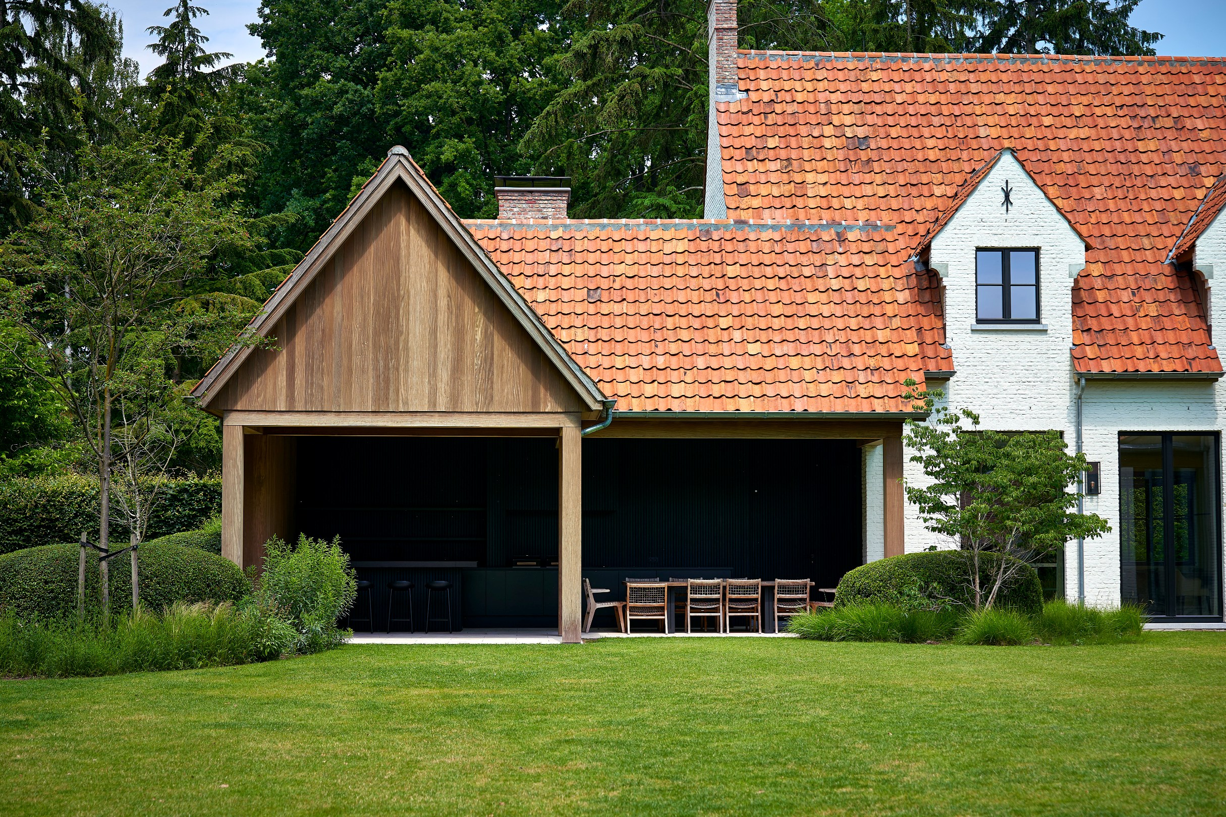Op een uitermate gunstige locatie, volledig herbouwd in 2021 onder volledige supervisie van architect Dieter Vander Velpen, typische Brasschaatse villa met alle hedendaags comfort en luxe en duurzame afwerking.Indeling gelijkvloers: Entree met ruime vestiaire en gastentoilet, bergruimte en trap naar de verdieping, ruime mud room voorzien van ingemaakte kasten, leefruimte met salon, bar en ruim huiskantoor, fraaie inloop-wijnkast, aparte dienstinkom met gastentoilet en tweede trap naar de verdieping, riante leefkeuken met eetkamer voorzien van mooi schrijnwerk en alle hedendaags toestellen, ruime bijkeuken voorzien van ingemaakte kasten en ruime garage voor 2 wagens met kastruimte en extra bergzolder, en toegang naar het overdekt terras met buitenkeuken en eetplaats.