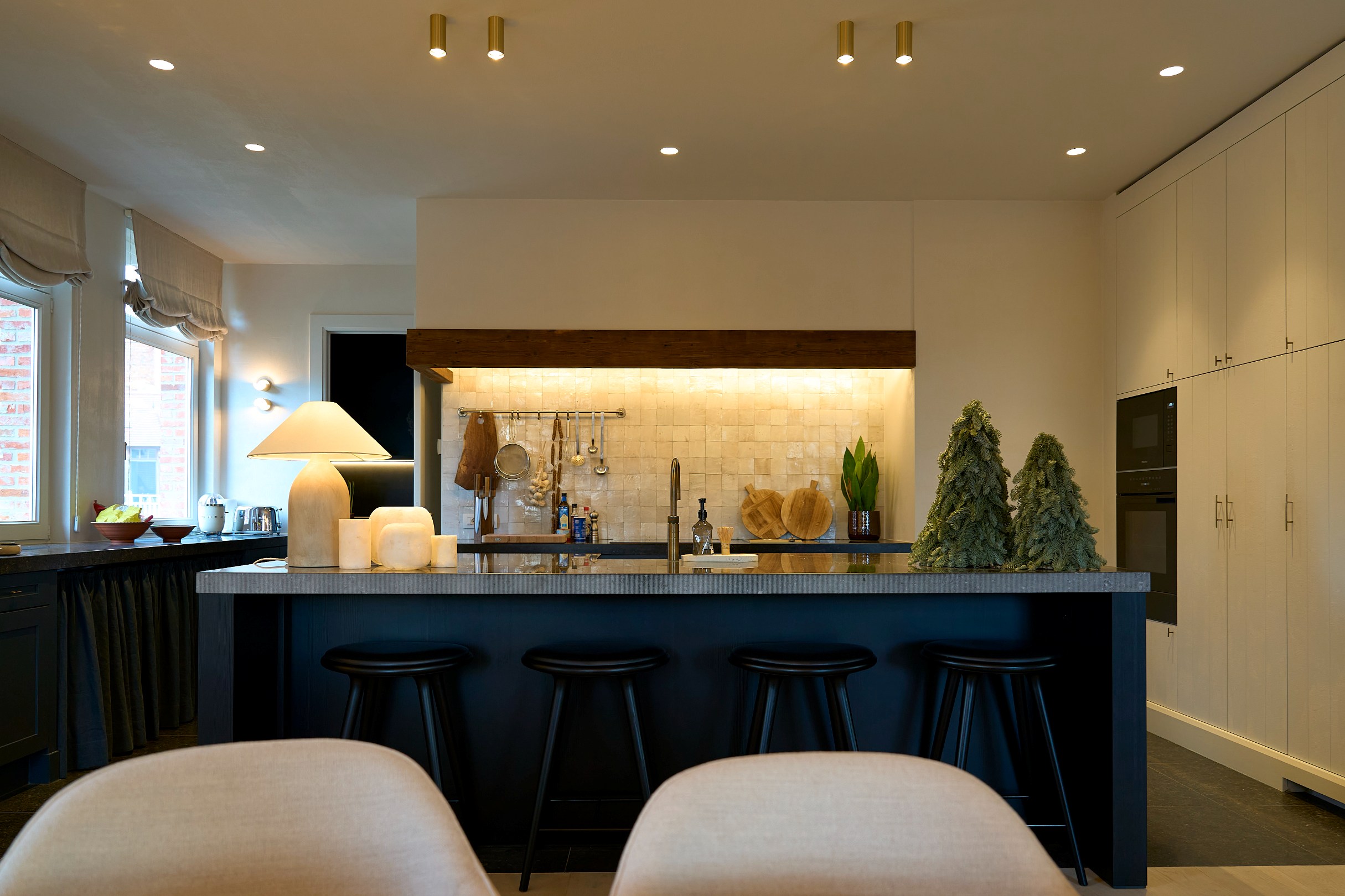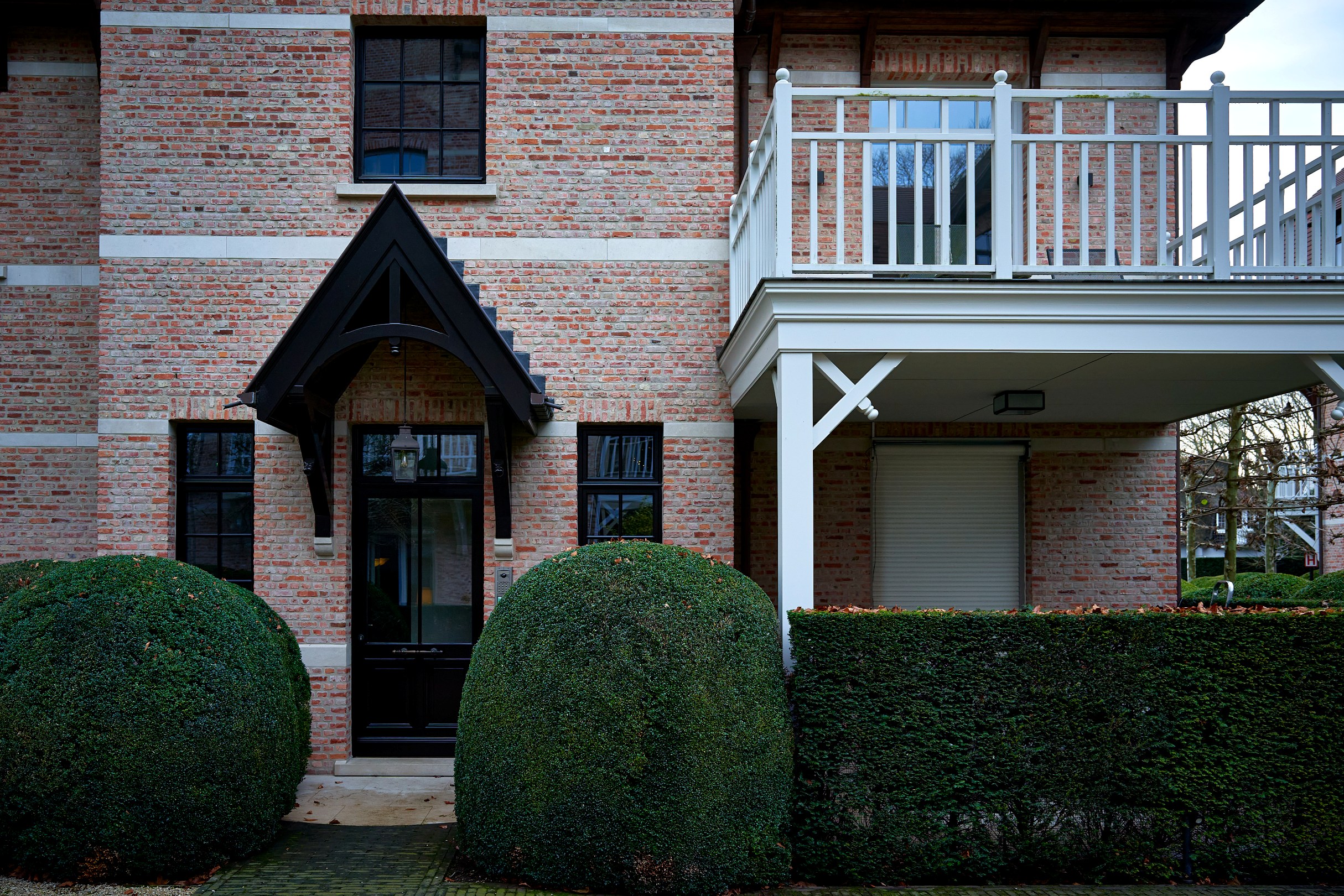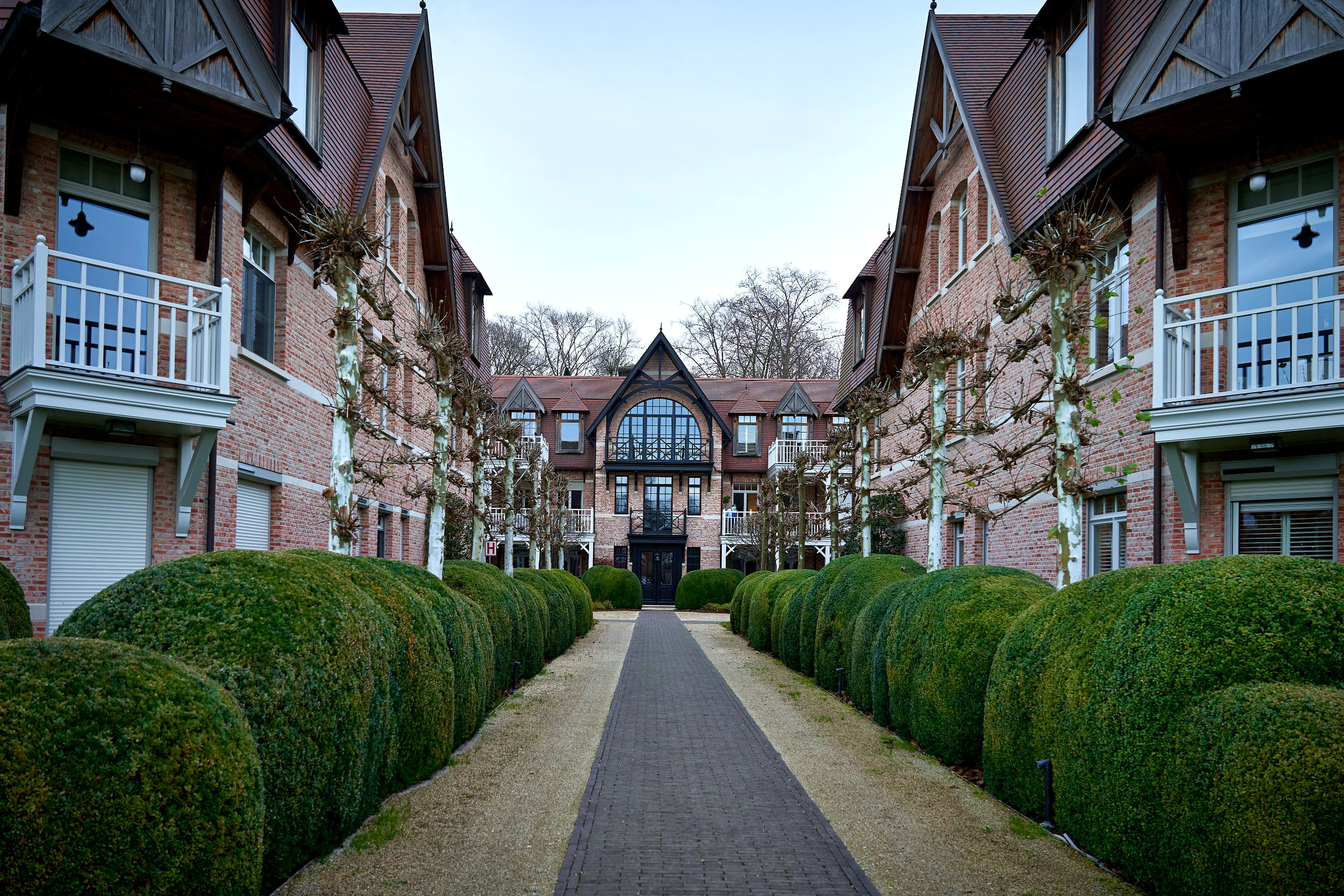 De architectuur is geïnspireerd op de elegante parkarchitectuur van het begin van de 20ste eeuw, met een bijzonder oog voor detail en authenticiteit. Het gebruik van gerecupereerde baksteen en prachtig uitgewerkt houtwerk verleent het geheel een warme, tijdloze uitstraling.